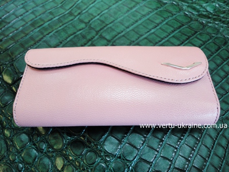 арт 13. Чехол Vertu Constellation. Овчинная кожа Pink. Серебряный логотип